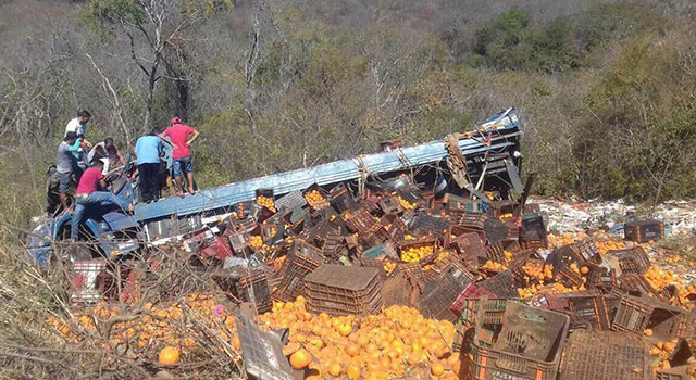 O acidente teria acontecido por volta das 13h, quando o motorista perdeu o controle do caminhão carregado com tangerina, vindo a capotar na curva, ficando totalmente destruído.