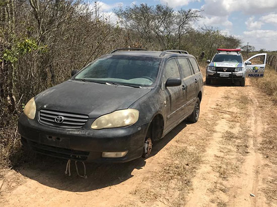 Na localidade informada a guarnição encontrou um veículo modelo Toyota Fielder, cor preta e placa de Lauro de Freitas-BA. O veículo estava em péssimas condições e faltando inúmeras peças.