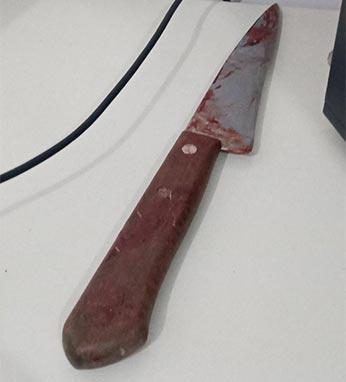 A polícia militar foi acionada e conseguiu localizar o suspeito em uma estrada vicinal que dá acesso à Rodovia João Paulo II. O mesmo estava em posse da faca utilizada.