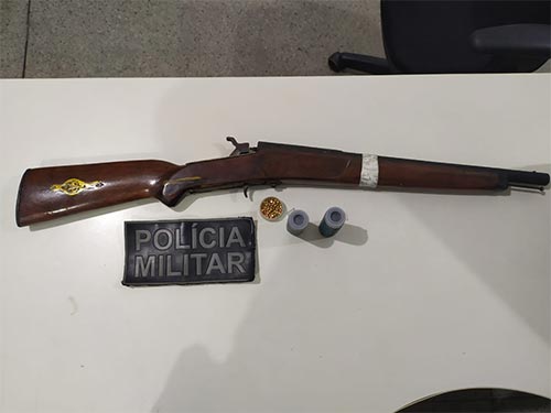 Ao realizar a abordagem pessoal, nada de ilícito foi encontrado com ele, porém, o mesmo informou que possuía uma espingarda calibre 12 de fabricação artesanal no interior de sua residência. Com a autorização dele, os policiais adentraram à residência e localizaram o referido armamento.