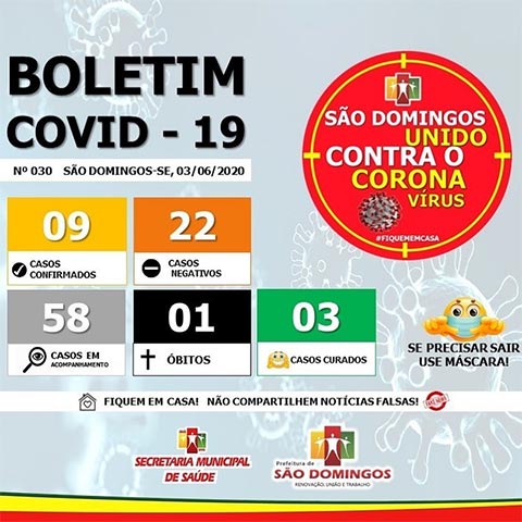 A Secretaria Municipal de Saúde de São Domingos, divulgou mais um boletim epidemiológico nesta quarta-feira, 03.