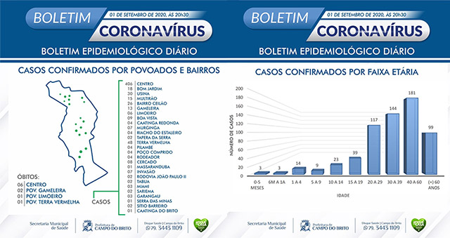 Campo do Brito soma desde o início da pandemia do novo coronavírus 632 casos confirmados da doença.