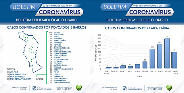 Os novos casos confirmados para Covid-19 em Campo do Brito tratam-se de 02 pacientes do sexo masculino e 01 paciente do sexo feminino.