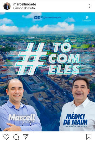 Na rede social o pré-candidato Marcell escreveu “É com muita alegria que anunciamos que Médici de Maim é o nosso pré-candidato a vice-prefeito. Não tenho palavras para agradecer a cada um de vocês pelas manifestações de carinho com mensagens de apoio, ligações e boas vibrações. Tudo isso é mais um reflexo de que Campo do Brito está feliz com a nossa escolha!”.