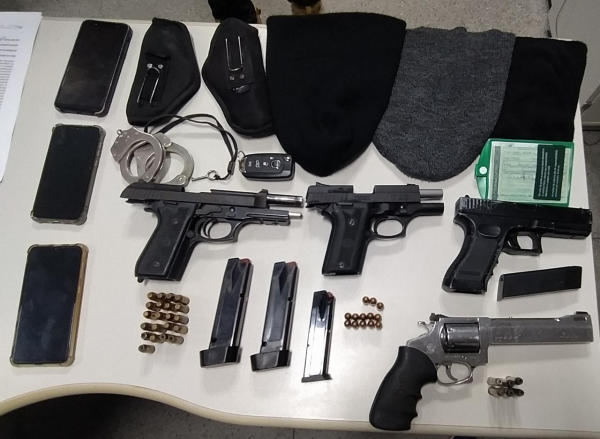 A operação resultou ainda na apreensão de uma pistola .380, com um carregador; uma pistola .40, com dois carregadores; um revólver .38; 21 munições de .40; 13 munições de .380; seis munições de .38; três balaclavas; dois coldres de arma de fogo; uma algema; três celulares; além do veículo. As diligências investigativas prosseguem a fim de identificar mais coautores e crimes da associação.