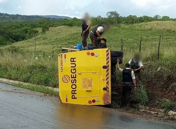 Um veículo de transporte de valores da empresa Prosegur virou próximo a ponte do Rio Vaza Barris. De acordo com as informações apenas danos materiais foram registrados.