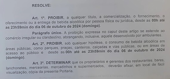 Campo do Brito, que faz parte da 24ª Zona Eleitoral, é um dos municípios onde a proibição será aplicada a partir das 00h deste domingo dia 06.