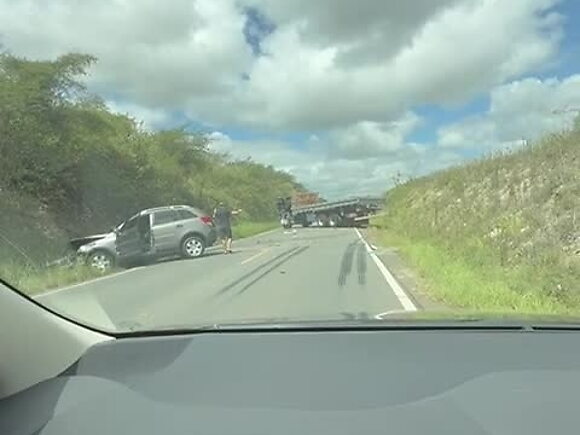 O acidente envolveu um carro, com placa de Macambira, e um caminhão, mas, até o momento, não há informações detalhadas sobre o ocorrido. De acordo com os primeiros relatos, o impacto resultou apenas em danos materiais.