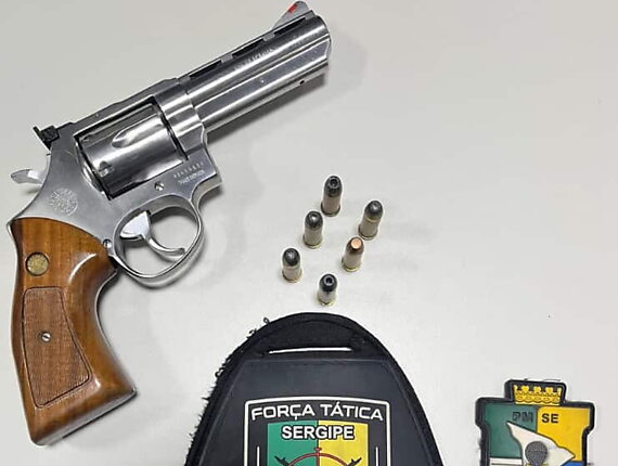 Na revista pessoal, os policiais encontraram um revólver calibre .38 com seis munições intactas em posse do suspeito. Ele foi detido no local.
