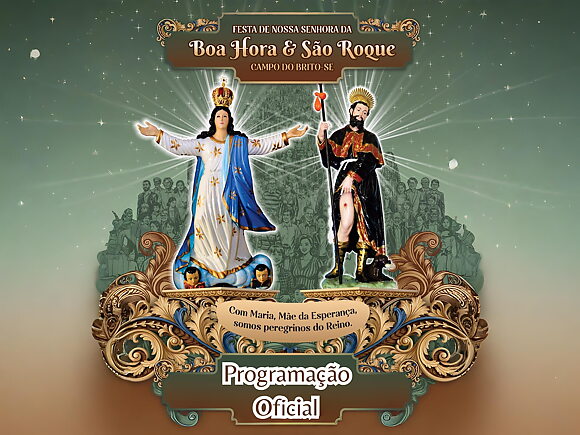 Foi divulgada nesta quinta-feira (11) a programação religiosa da tradicional festa dos padroeiros de Campo do Brito, Nossa Senhora da Boa Hora e São Roque. As celebrações ocorrerão entre os dias 5 e 16 de agosto, com atividades diárias que incluem novenas, missas, procissões e eventos culturais.