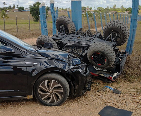 Um acidente entre um carro e um quadriciclo foi registrado na manhã deste sábado, 24, na estrada vicinal que dá acesso à barragem de Campo do Brito.